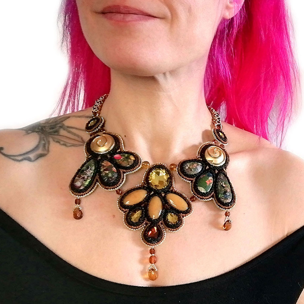 Material: Jaspis - Mosaikjaspis Edelsteine, Resin, Glas, Metall