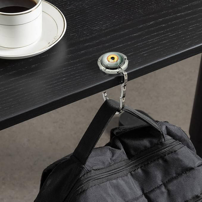 Der Metall-Handtaschenhalter wird einfach an der Tischkante eingehängt und bietet einen stabilen Haken zum Anhängen von Taschen, Handtaschen oder Rucksäcken an Tischen – egal ob im Café, Restaurant, Büro oder auf Reisen. Durch die kompakte, klappbare Form ist er klein genug und passt in jede Tasche, sodass du ihn immer griffbereit hast. Gleichzeitig wirkt das Glasauge modern, mystisch und einzigartig – ein Accessoire, das Gespräche auslöst und dein Outfit stilvoll ergänzt.